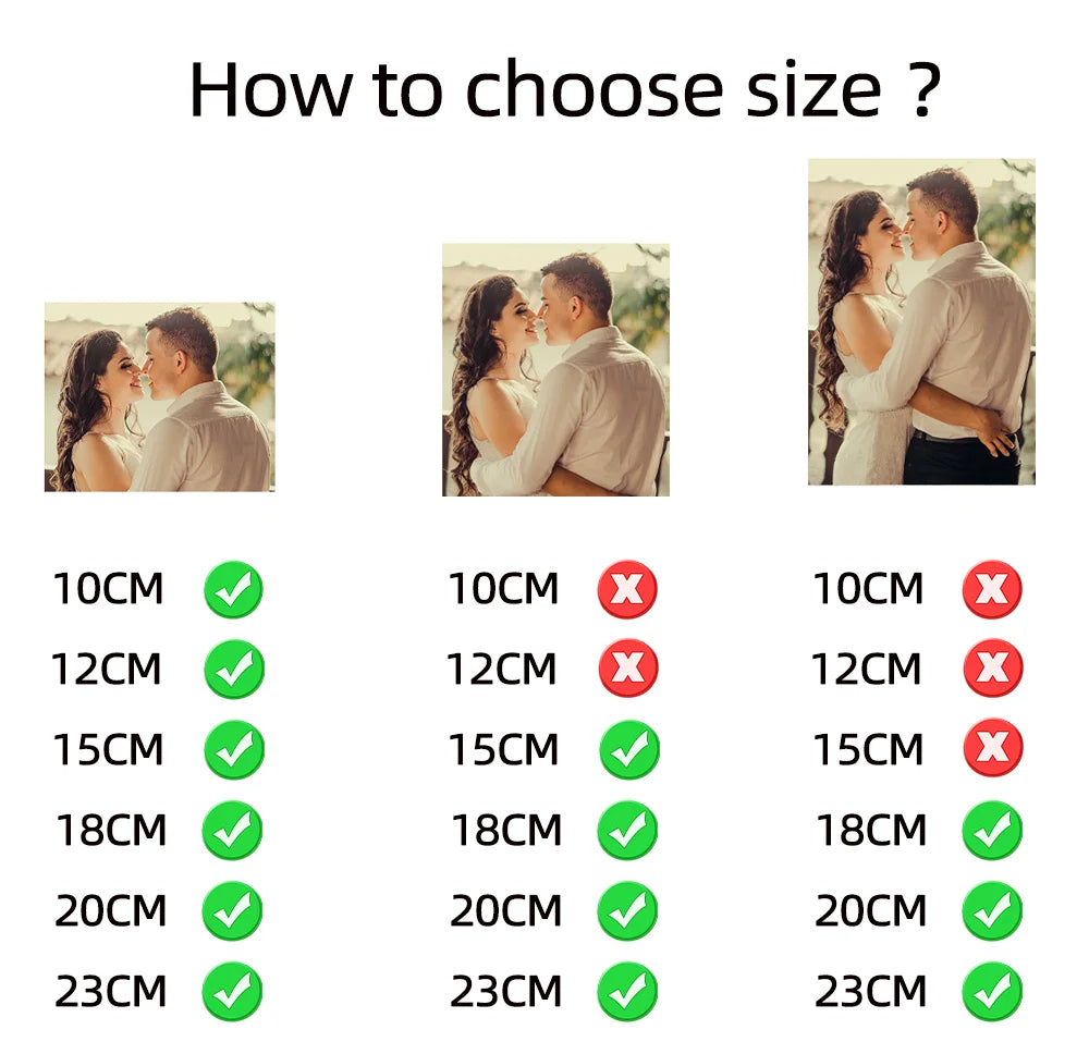 - If using a full-body photo, we recommend selecting a lamp size of 18cm, 20cm, or 23cm for better clarity.